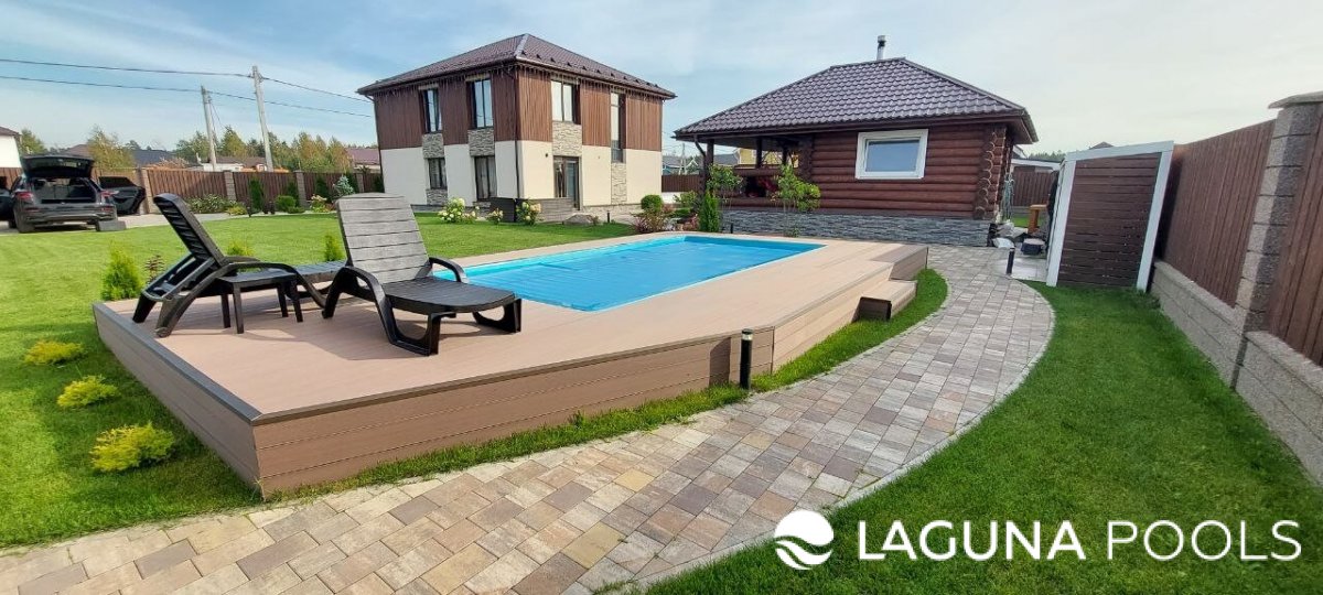Композитный бассейн с террасой из доски